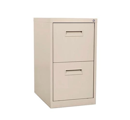 Archivero móvil metálico de 2 gavetas, con jaladera de plástico embutida y rodajas ocultas.