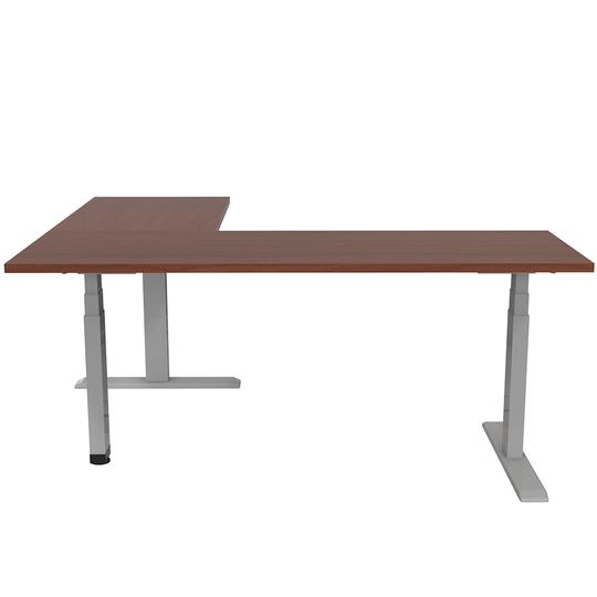 Escritorio en L con altura ajustable, sistema automático. Cubierta de melamina.