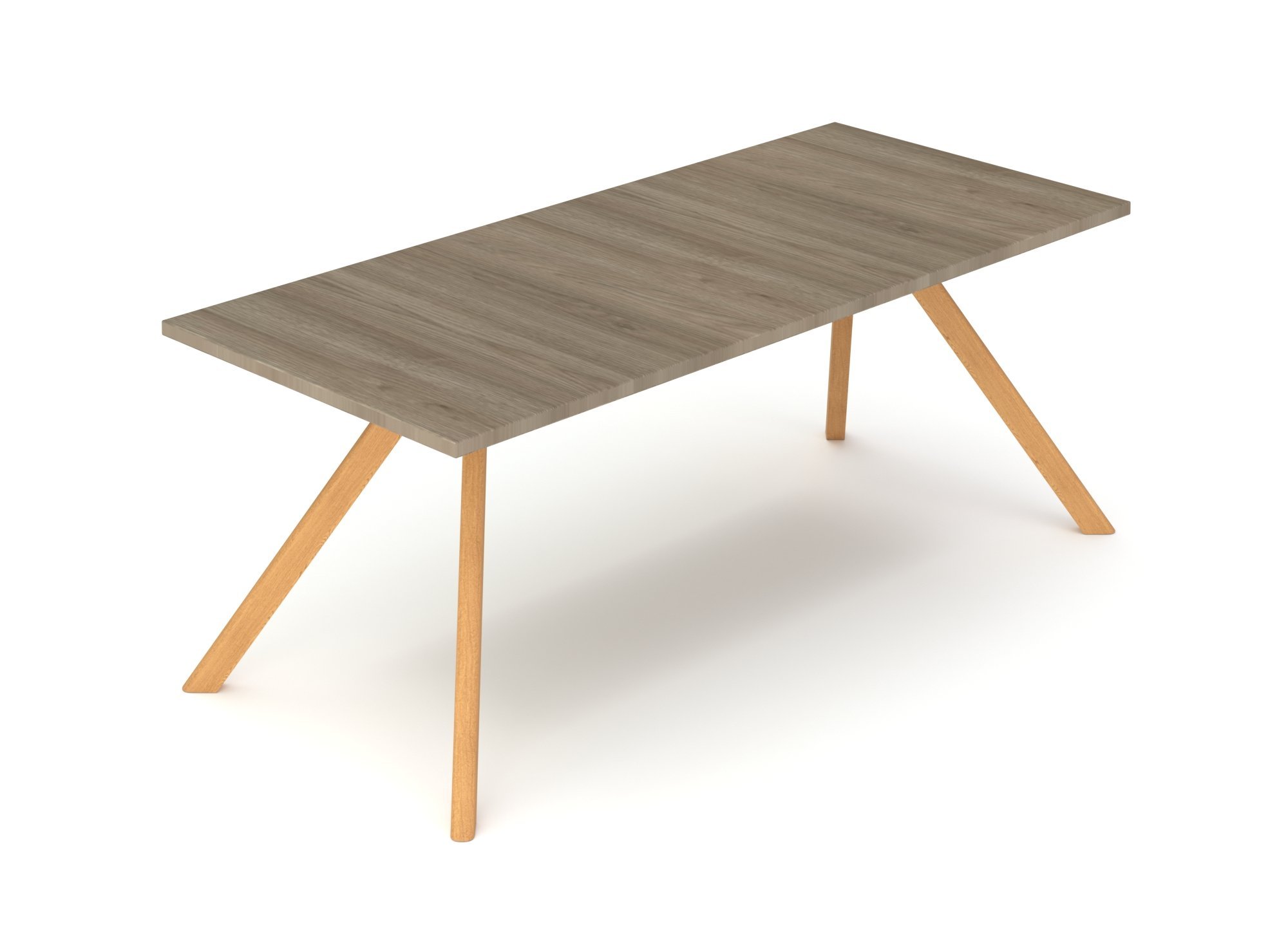 -Mesa rectangular Tech, con base de madera importada en color haya, cubierta con centro en MDF