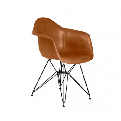 -Silla Berlín con descanzabrazos, tapizada en piel para gustos más sofisticados y para los que buscan mayor confort, muy ergonómica. • Material: Estructura tapizada en piel opción de color (café claro o negro). Con patas de metal en color negro.