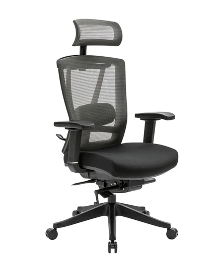 Silla ejecutiva ergonómica con abundantes prestaciones, sus mecanismos de ajuste permiten que la silla pueda ser utilizada en diversos escenarios y por un largo periodo de tiempo. Esta fabricada con diversos componentes de uso rudo por lo que puede ser utilizado para 2 o 3 turnos sin problema. El diseño de la silla es robustay a la vez sobria con líneas rectas que le dan un aspecto moderno y minimalista particularmente por su estructura plástica negra. El silla H1 permite tomar una postura ideal para trabajo en computadora y darse un cómodo descanso cambiando la postura de forma dinámica y sencilla con los ajustes que resaltan su componente italiano marca Donati. H1 es un silla ejecutiva de altas prestaciones a un costo de inversión muy competitivo.